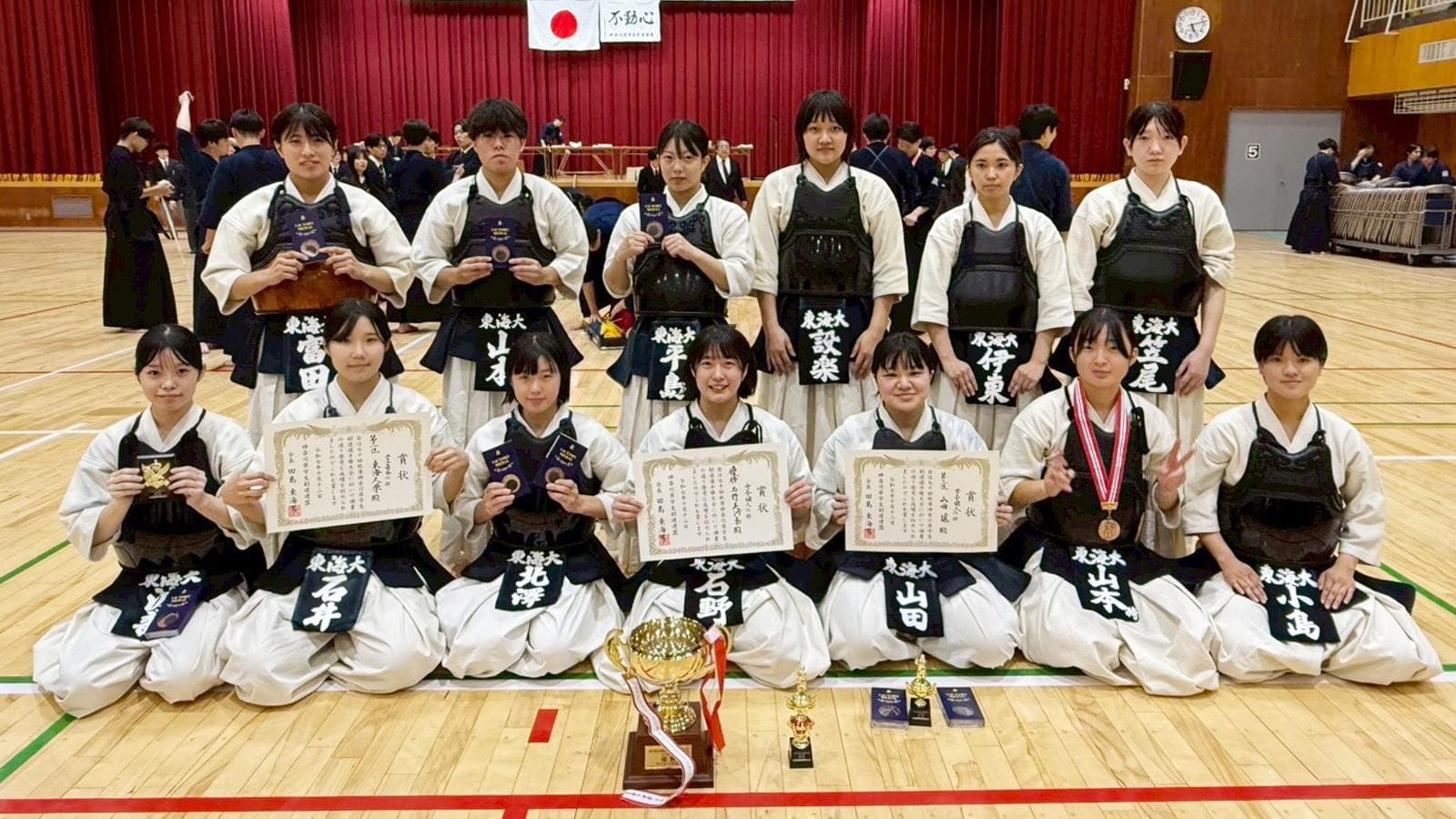 1959年の同好会結成から、今では総勢131名の部員数、全日本剣道大会においても男女ともに優秀な成績を残すまでに成長いたしました。「忍耐・練達・希望」を部訓に掲げ、日々稽古に精進しています。